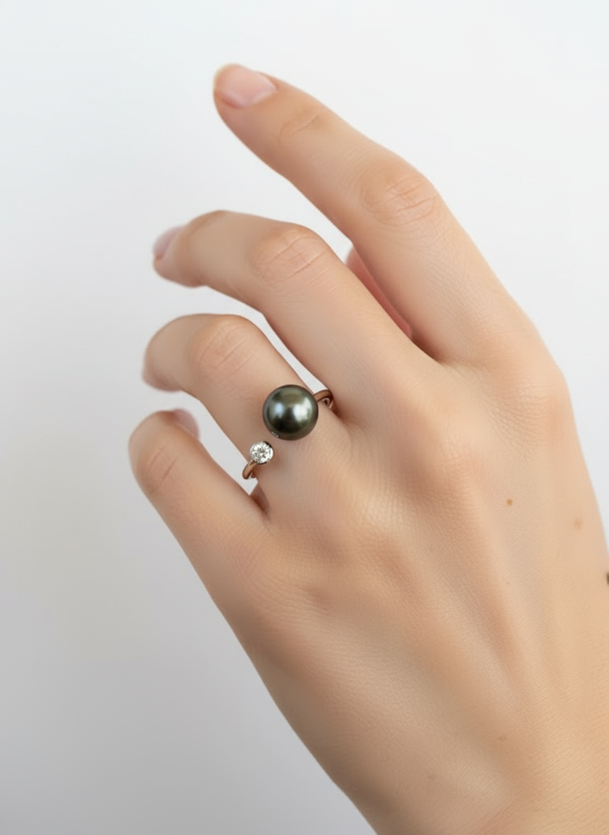 10mm Tahitian South Sea Pearl & Diamond Accent Ring