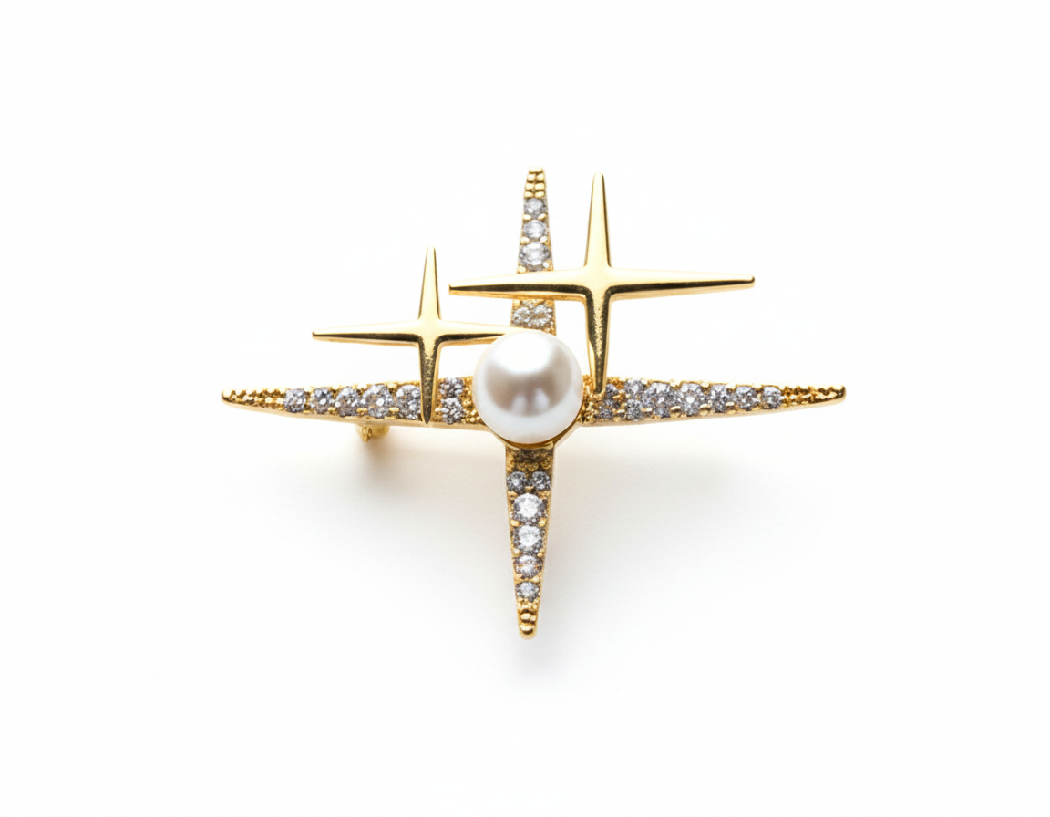 The striking combination of sparkling stars and the natural glow of the pearl creates a brooch that symbolizes radiance, hope, and sophistication. Whether worn on a blazer, dress, evening gown, or scarf, this versatile accessory adds instant glamour to any outfit.