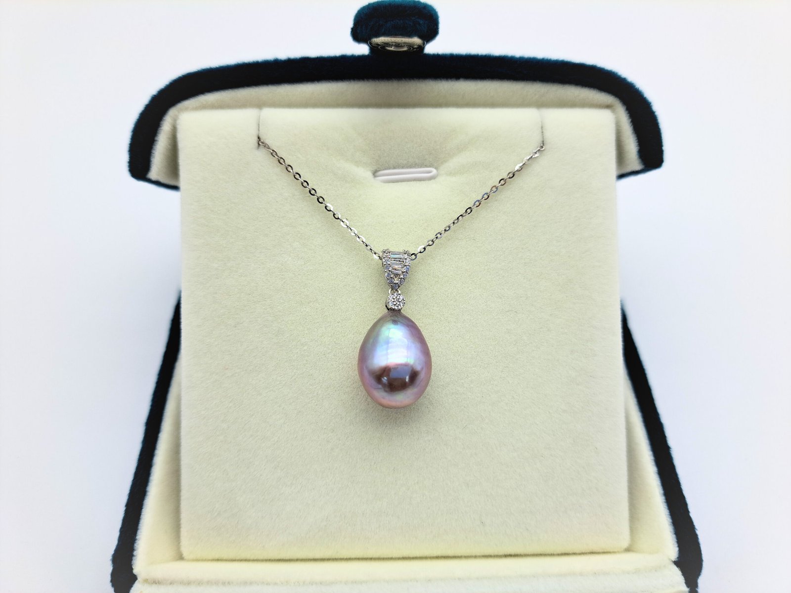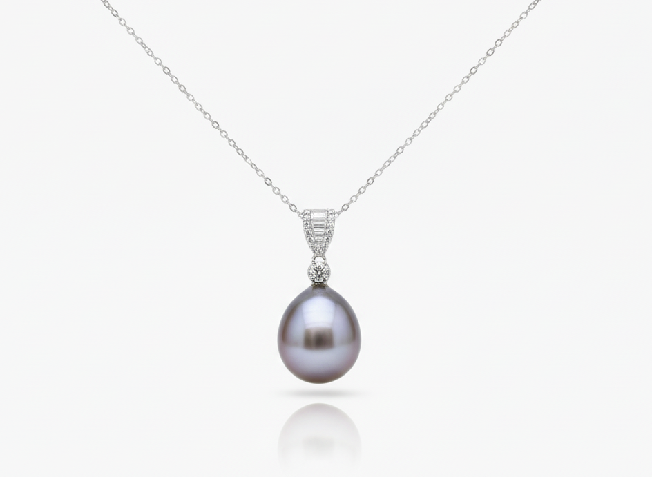 Celebrate the intersection of organic beauty and geometric precision with our Teardrop Freshwater Pearl Pendant. This statement piece features a massive 13mm+ baroque pearl, celebrated for its unique teardrop silhouette and rich, natural lavender-pink overtones.