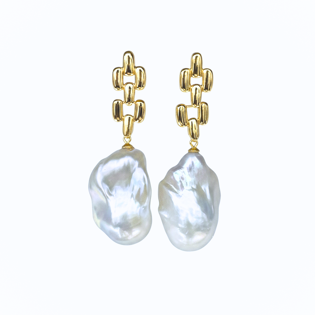 Celebrate the bold, singular beauty of the ocean with these magnificent freshwater baroque pearl earrings. Each pair features two hand-selected, oversized baroque pearls, cherished for their one-of-a-kind, organic silhouettes that ensure your jewelry is as unique as you are. These pearls radiate a brilliant, pure white body color with a deep, mirror-like luster that creates a captivating, luminous glow.